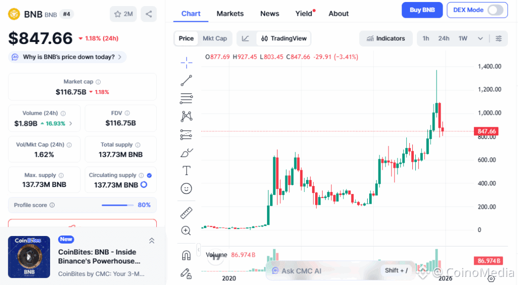 The BNB price prediction for 2026 is looking increasingly bullish with Hong Kong creating frameworks for institutional crypto investment. BNB is currently trading around $847 on December 23.