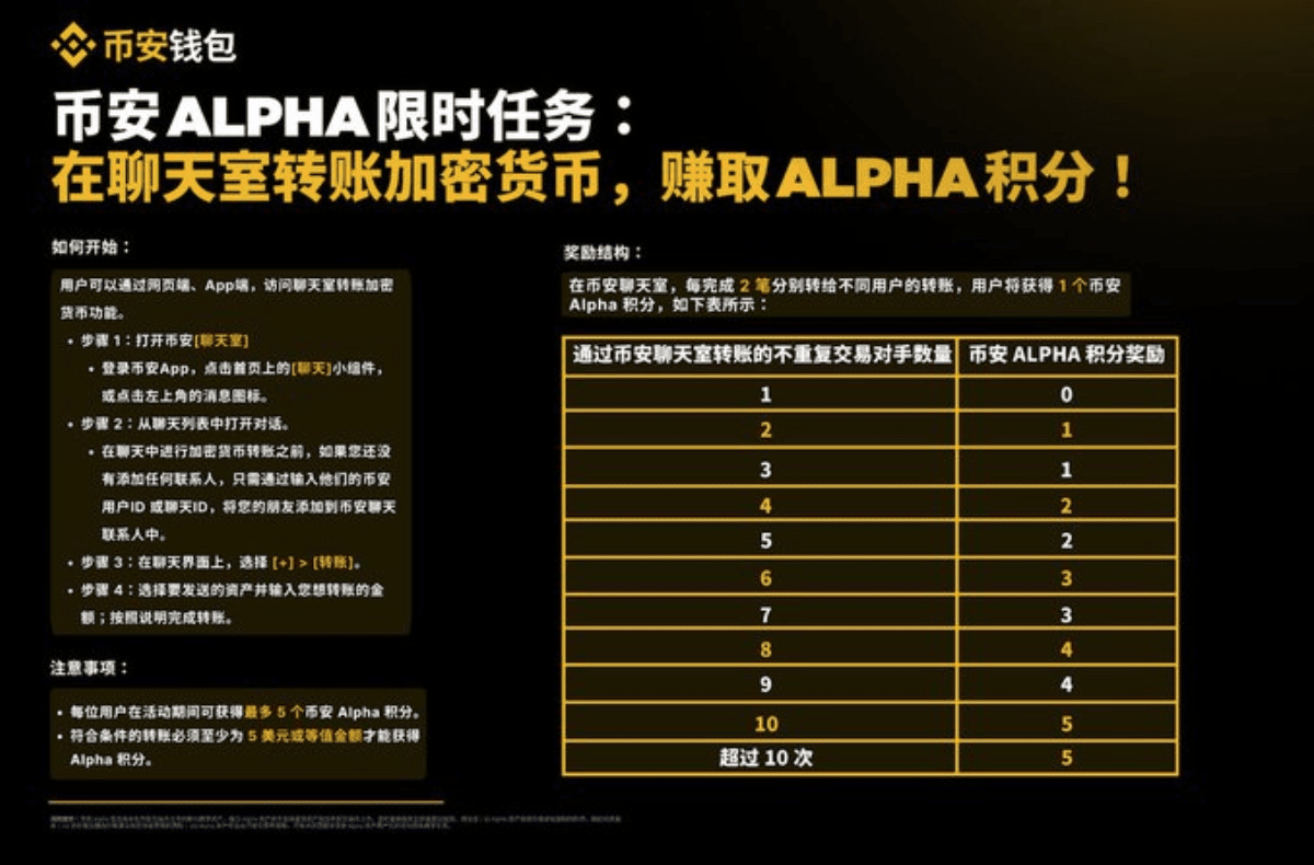 If the previous Alpha points were earned through substantial fees, then this transfer activity in the chat room is a targeted reduction benefit given by Binance to retail investors.