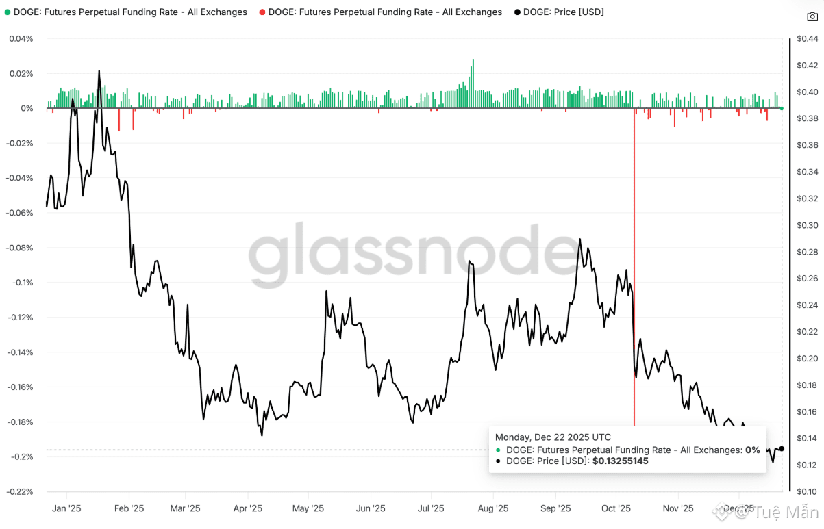 Funding rate chuyển sang vùng âm phản ánh việc các trader đang gia tăng vị thế bán (Short), qua đó tạo áp lực kìm hãm giá. Ngược lại, funding rate dương nhưng ở mức rất thấp cho thấy sự dè dặt của thị trường, khi chỉ có số ít nhà đầu tư sẵn sàng mở rộng mức độ tiếp xúc với DOGE. Chỉ khi funding rate cải thiện rõ rệt và tăng lên các ngưỡng cao hơn, kịch bản tăng giá mới được củng cố, đồng thời mở ra khả năng hình thành một xu hướng đi lên bền vững hơn.