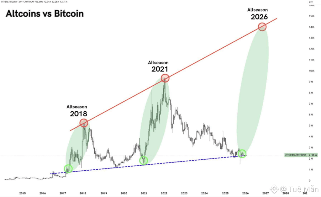 Theo các chu kỳ trước, mùa altcoin thường bắt đầu sau khi Bitcoin đã có một giai đoạn tăng trưởng mạnh và bắt đầu chững lại. Khi đó, dòng vốn mới dịch chuyển rộng sang các altcoin.