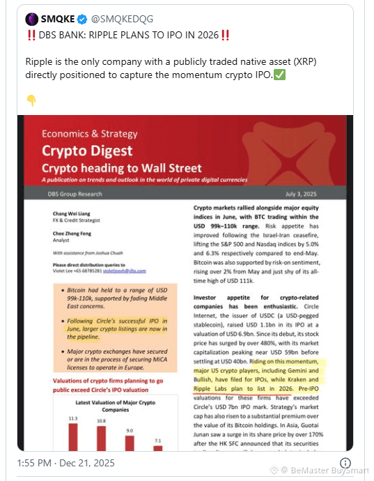 $XRP A fresh claim circulating among digital asset observers has renewed focus on whether Ripple could soon take a step toward the public markets.