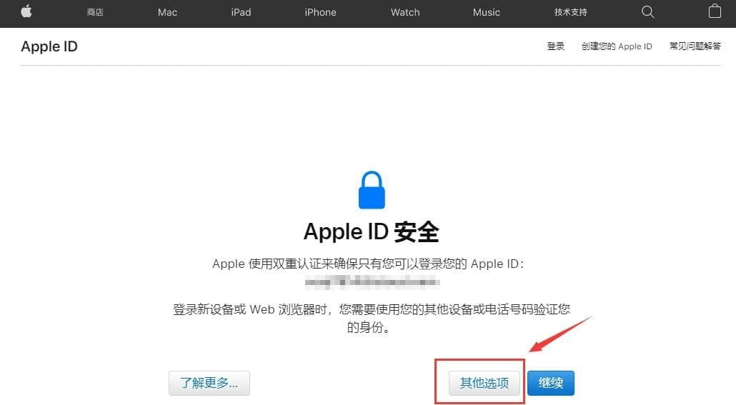 4. Choose 'Other Options'. If you are registering with a mobile phone, do not choose to continue; you must select 'Other Options'.