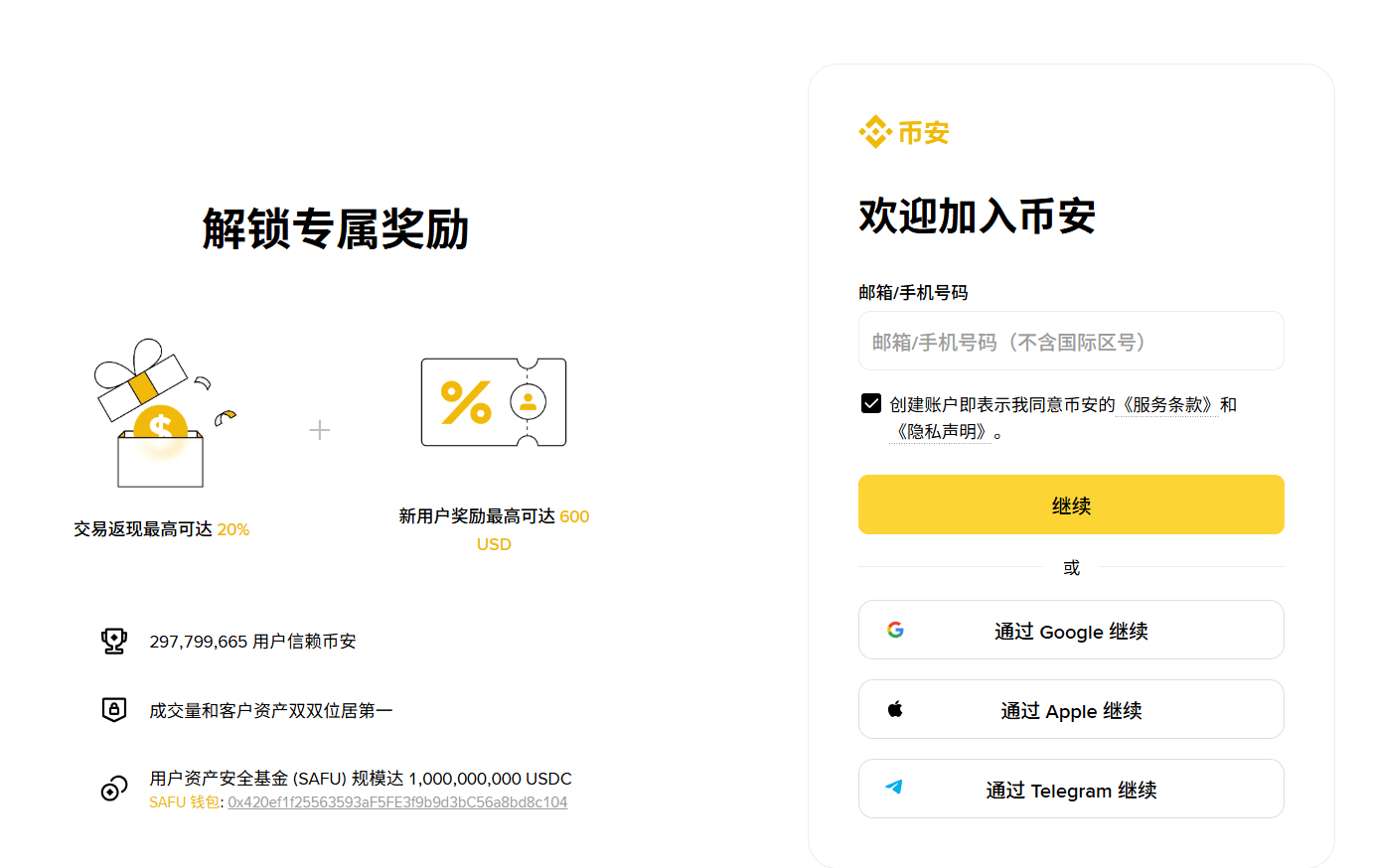 Binance official registration: https://www.binance.com/zh-CN/join?ref=CS7MMKKE (Copy the URL to open in the browser)