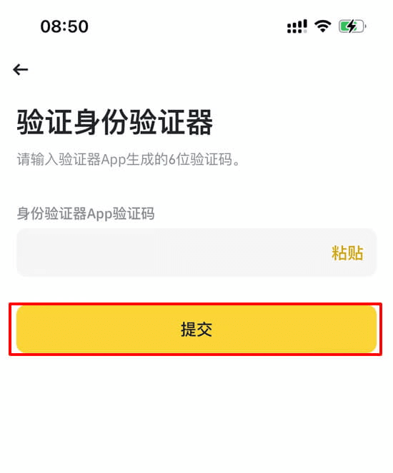 9. Return to the Binance APP and use the newly enabled Binance Authenticator to validate your setup request. Click [Next], enter the 6-digit code in the Binance Authenticator, and then click [Submit].