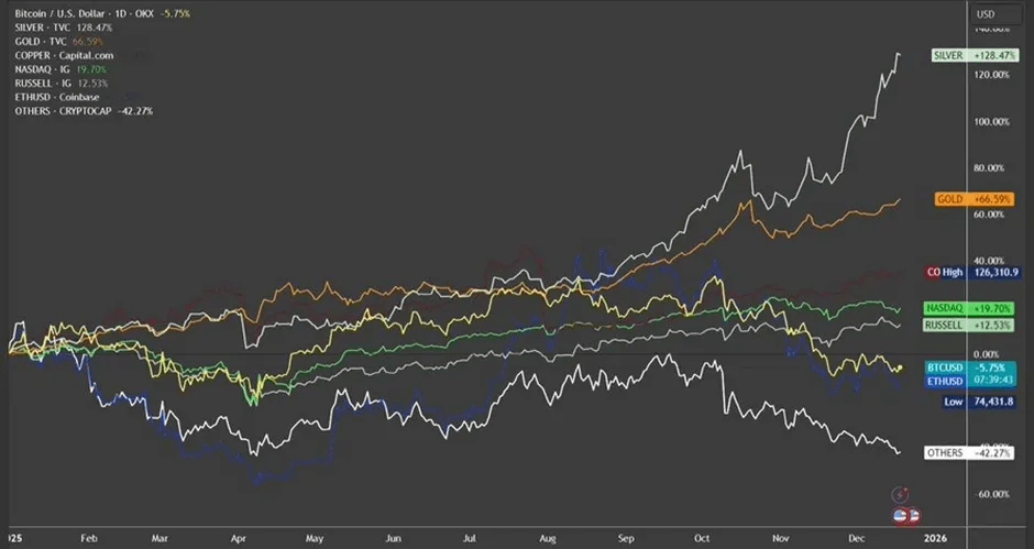 A move towards $80,530 would place Bitcoin in US dollars well below its annual starting point. This would highlight how much it has lagged compared to gold, silver, and stocks.