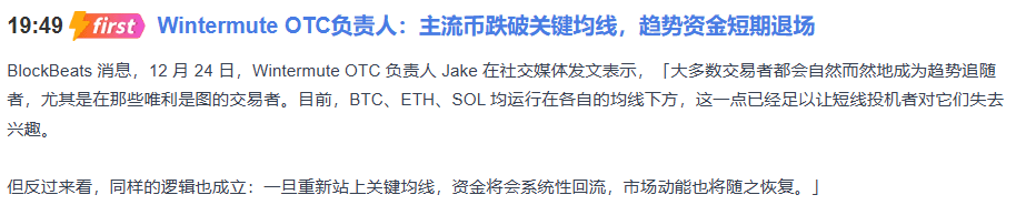 Today, Wintermute OTC head Jake's view actually revealed a key logic: moving averages are not just lines, but also a thermometer of market sentiment.