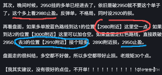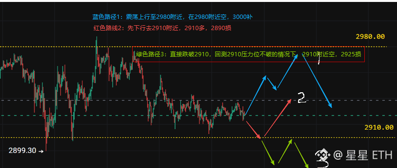 目前盘面依旧是2910-2980的区间震荡,高空低多路线不变。具体安排如下: