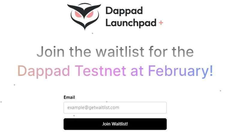 8. Fill in the email address of Dappadofficial and get the test network waiting list: