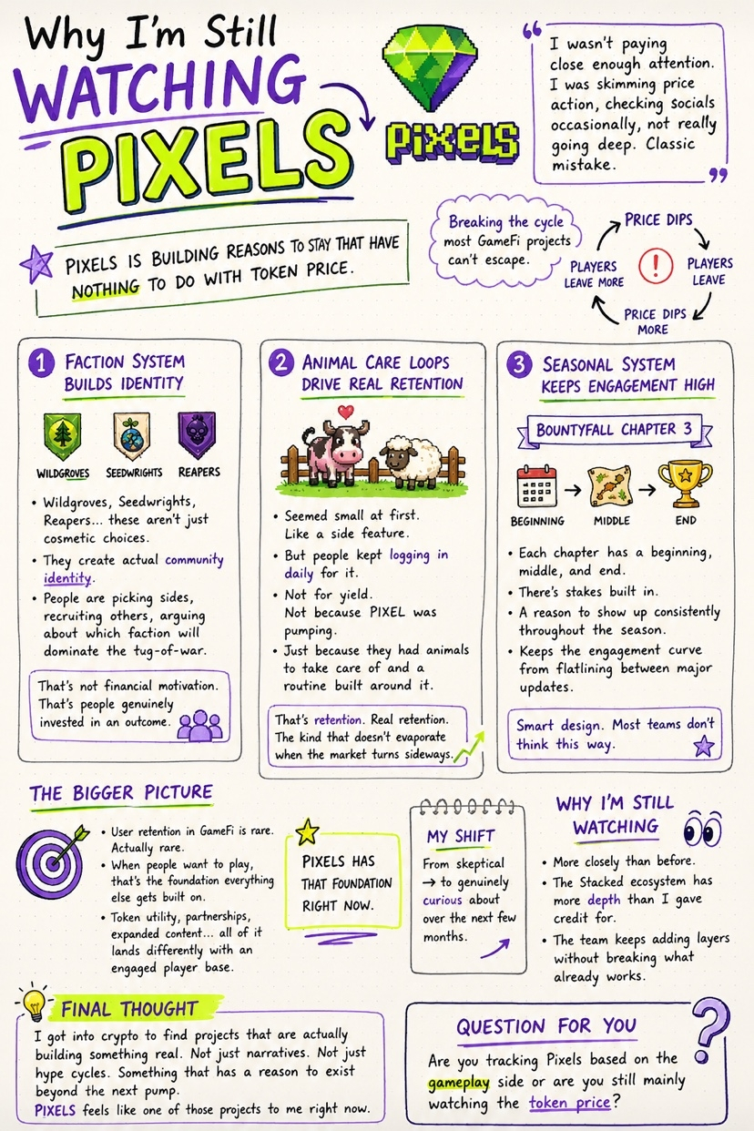 Most GameFi teams don’t think this carefully about the player experience cycle. They drop a feature, watch the spike, then scramble when numbers fall. Pixels feels like a team that actually mapped out the player journey and thought about what keeps someone coming back in week three, not just day one.