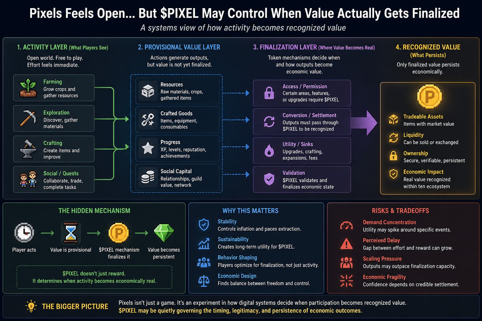 Beneath the relaxed farming loops and social accessibility, PIXEL may be serving a more foundational purpose: structuring the timing, legitimacy, and persistence of economic outcomes.