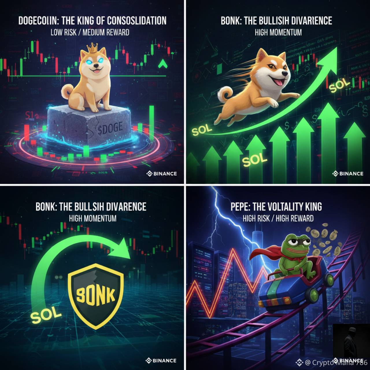 The market is currently "Risk-Off," meaning patience is key. Watch for $BONK to lead the reversal and $DOGE to hold the floor.