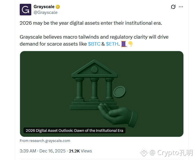 作为行业头部资产管理公司,Grayscale 的持仓变化和市场观点具有很强的风向标意义。其最新报告中提到的 “机构资金主导市场” 的判断,也得到了链上数据的印证 —— 机构持仓已占 BTC 流通量近 30%,这次预测大概率会引发更多机构投资者的关注和布局,2026 年牛市行情值得期待。