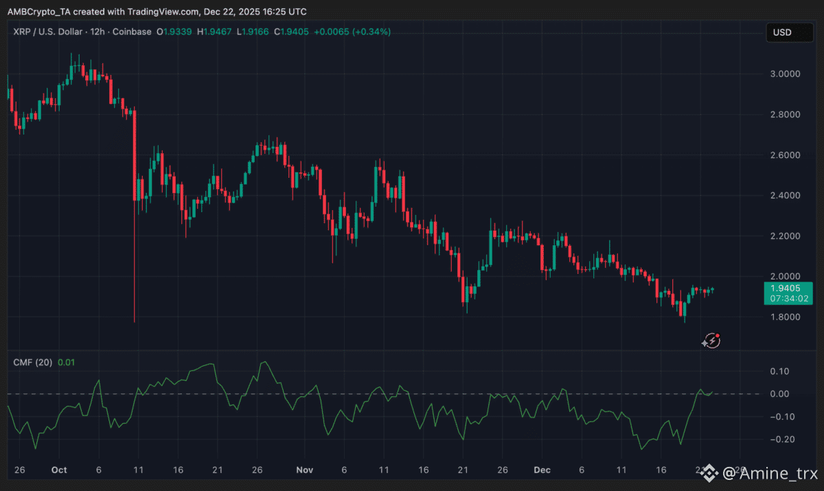 يتداول XRP حاليًا بالقرب من نطاق دعم محوري يتراوح بين 1.82 – 1.87، حيث بدأت حركة السعر تميل إلى الاستقرار بعد موجة التراجع الأخيرة.