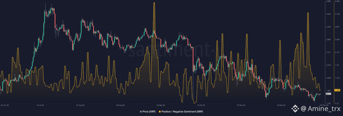 تشير القراءة الحالية لمعنويات السوق إلى انتقال واضح في المزاج العام تجاه عملة XRP نحو التشاؤم الحاد، وهو نمط لطالما ارتبط تاريخيًا ببدايات التحركات الارتدادية القوية ⚠️↗️.