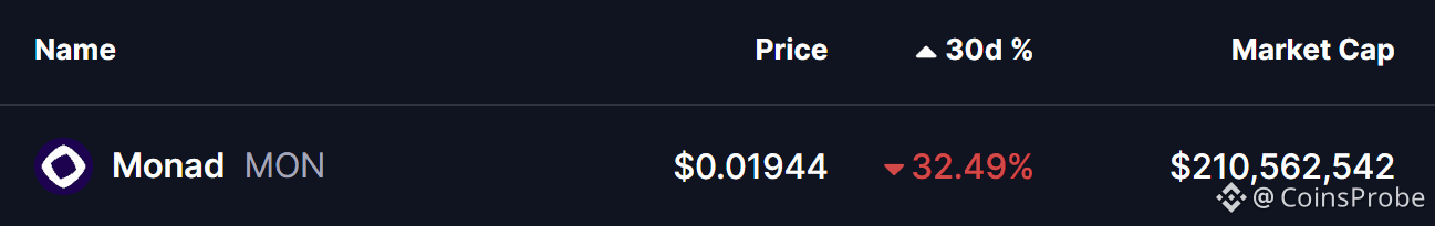 The broader cryptocurrency market has remained under pressure over the past several weeks, with the ongoing corrective phase weighing heavily on overall altcoin sentiment. Monad (MON) has also felt the impact of this weakness, as persistent selling pressure has kept price action subdued and volatile.