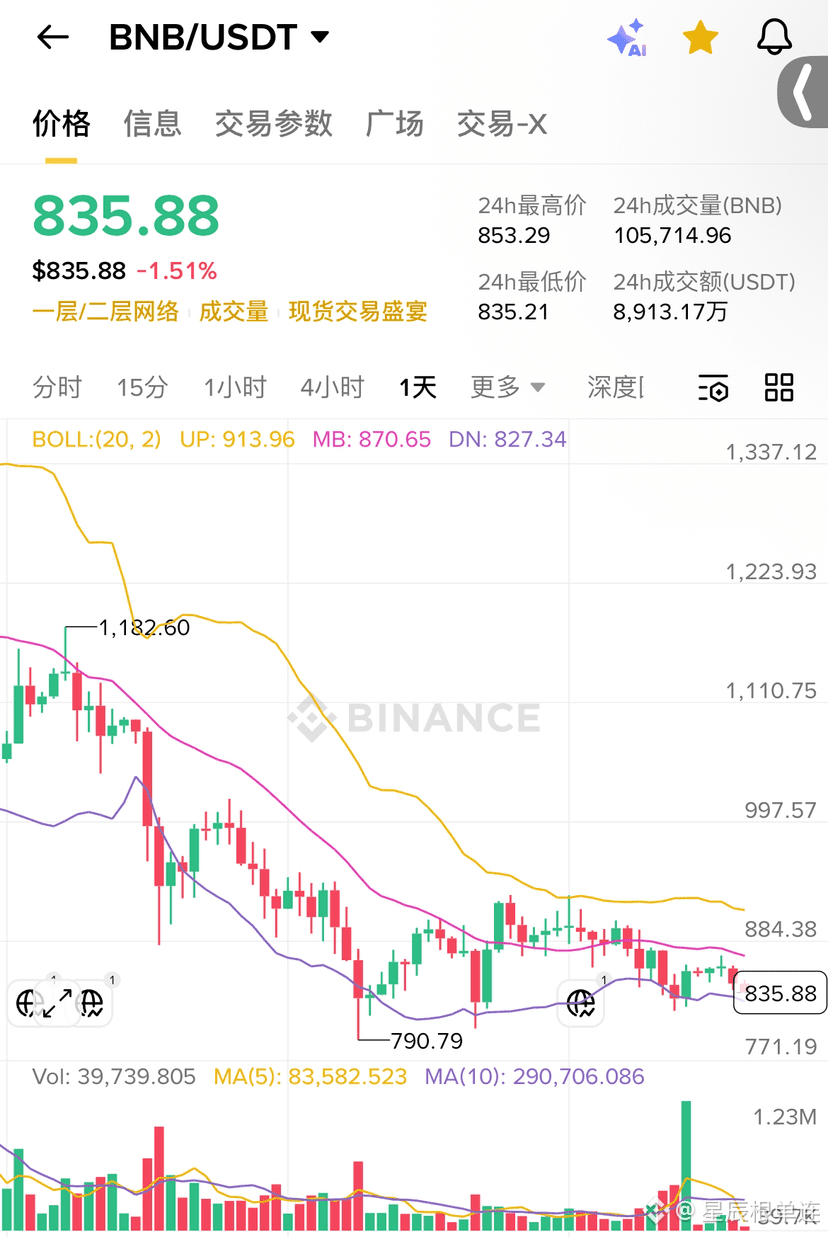 总而言之,当前BNB处于关键支撑位的考验期,方向尚未明朗。在操作上,无论是持有还是观望,都比平时更需要耐心。#加密市场观察 $BNB