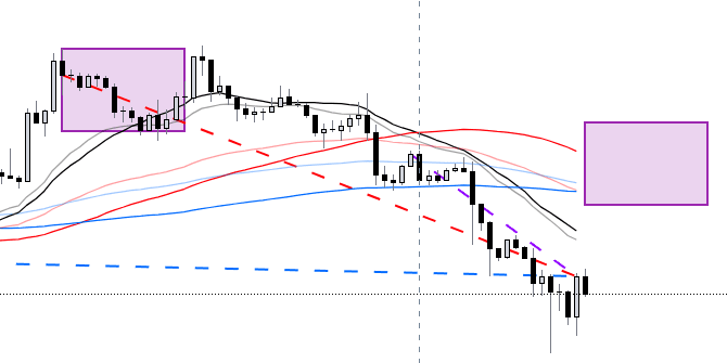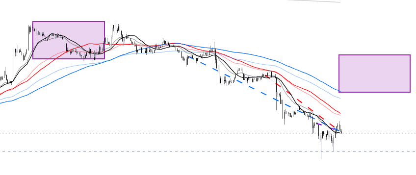 Let’s look at the 15-minute chart first. There is nothing much to say. It is a standard short position arrangement of moving averages.