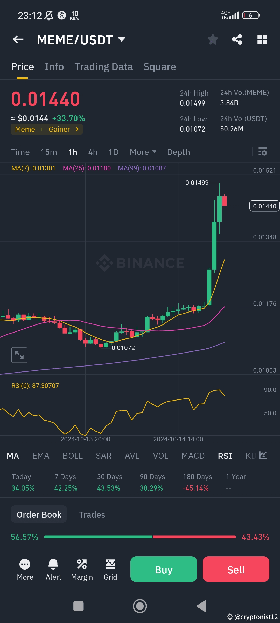 The increase in price suggests strong buying pressure, likely fueled by a positive sentiment or news around the MEME token.