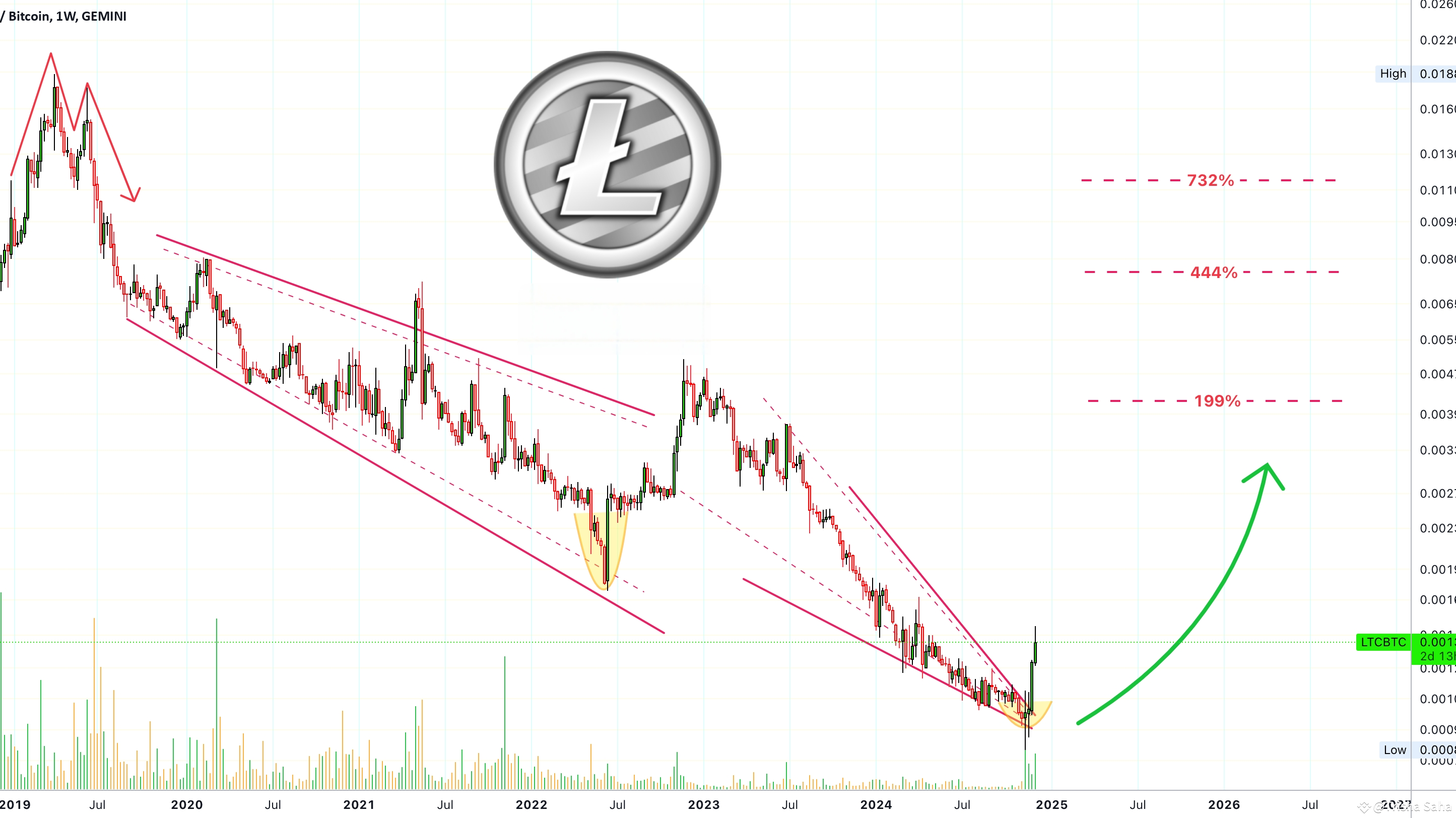 We are about to see something never seen before on this pair: It is the first uptrend ever, higher highs and higher lows for #LTCBTC (Litecoin vs Bitcoin).
