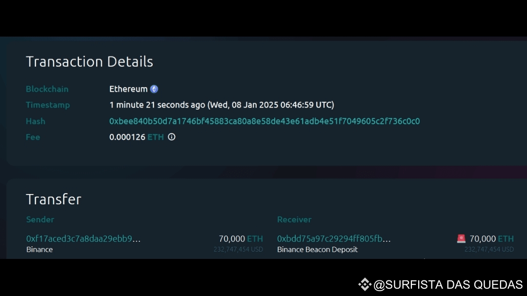 A massive 70,000 ETH (worth $232,747,454 USD) was just moved from#Binanceto Binance Beacon Deposit.