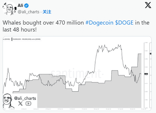 Crypto whale activity in DOGE pools in January is another sign that Dogecoin is about to make another splash in the crypto market. According to a recent update from keen whale watcher Ali Martinez, blockchain whales bought 470 million Dogecoins in 48 hours between January 9 and 10.