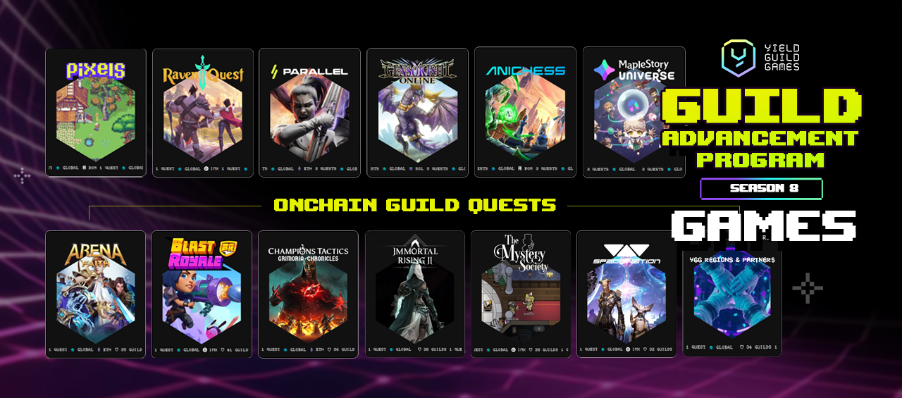 The Guild Advancement Program (GAP) has undergone two rounds of updates, bringing multiple upgrades to a large number of explorers. With the 8th season of GAP piloting the "Onchain Guilds" platform on the Base chain, multiple YGG communities competed on the Guild Mission Leaderboard to become the top guild.