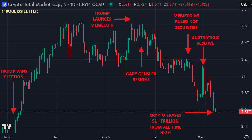 U.S. policy moves have increased selling pressure. President Trump's new tariffs on Canada, Mexico, China, and possibly the EU have driven institutional investors away from risky assets like cryptocurrencies.