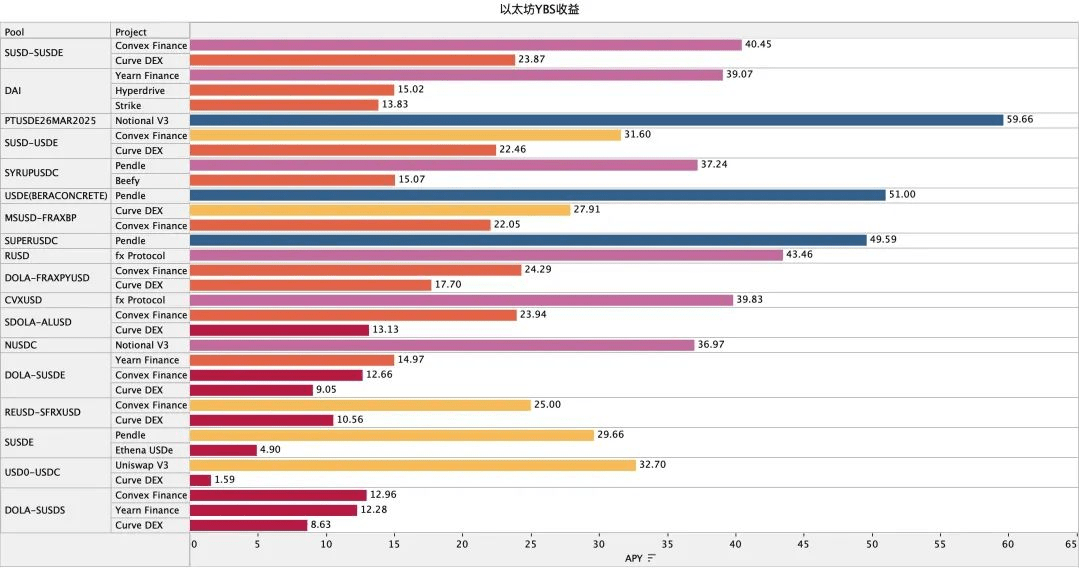 Here, a distinction needs to be made. The yields in the above chart are the yields of various pools, which even include the yields inherent to LSD assets, and are not entirely equivalent to the yields given by each YBS natively. The yield sources for participating in DeFi likely come from the participants themselves; this principle has always existed.