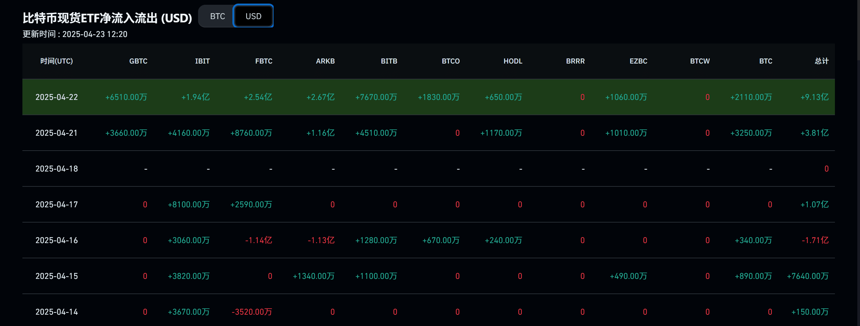 Previously mentioned short-term risk points, after all, the 4-hour RSI appears somewhat overbought, which is a signal of short-term overheating. The number of open contracts has also increased significantly. From the historical market performance rules, an increase driven by the derivatives market is usually difficult to sustain without effective support from the spot market's trading volume. In the recent several BTC increases, there have also been instances of rapid growth in open contracts but weak price increases, indicating that the previous selling power has not fully retreated. More buying funds need to continue flowing in to solidify the upward trend completely. So far this week, a large amount of funds has flowed into BTC's spot ETF, reaching as high as $913 million yesterday. BTC's rise naturally requires this trend to continue. From the perspective of spot layout, Lao Yi has received a lot of happy feedback from friends. The current situation is not the target we pursue; although there will still be some fluctuations in the subsequent process, Lao Yi firmly believes that new highs are not far away.