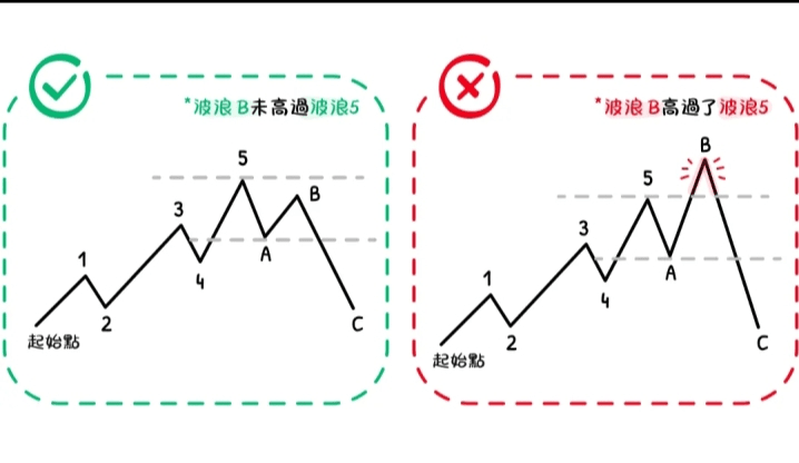 The high point of Wave B usually does not exceed the original high point of Wave A, indicating that the rebound amplitude within the corrective structure is limited.