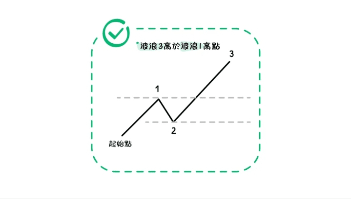 A trend is formed by many waves, but some waves do not conform to Elliott Wave Theory, so we must understand the rules to avoid misjudging some non-compliant waves as Elliott waves. Next, we will learn how to determine whether an upward trend wave conforms to Elliott Wave Theory.