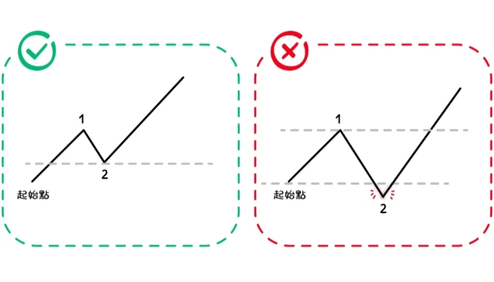 Wave 2: After the end of Wave 1, a price pullback occurs, but the retracement amplitude is limited, and the retracement amplitude will not fall below the starting point.