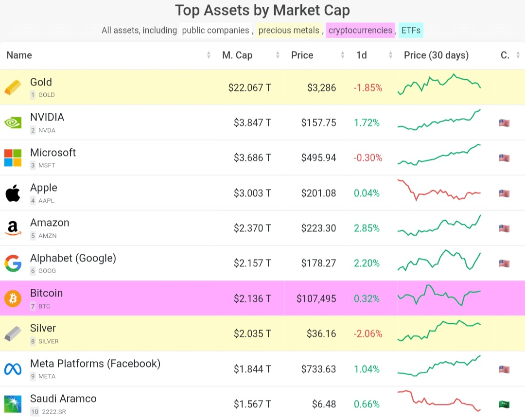 Still in April of this year $BTC was in 5th place, but today it is holding at 7th, yielding space to Google and Amazon.