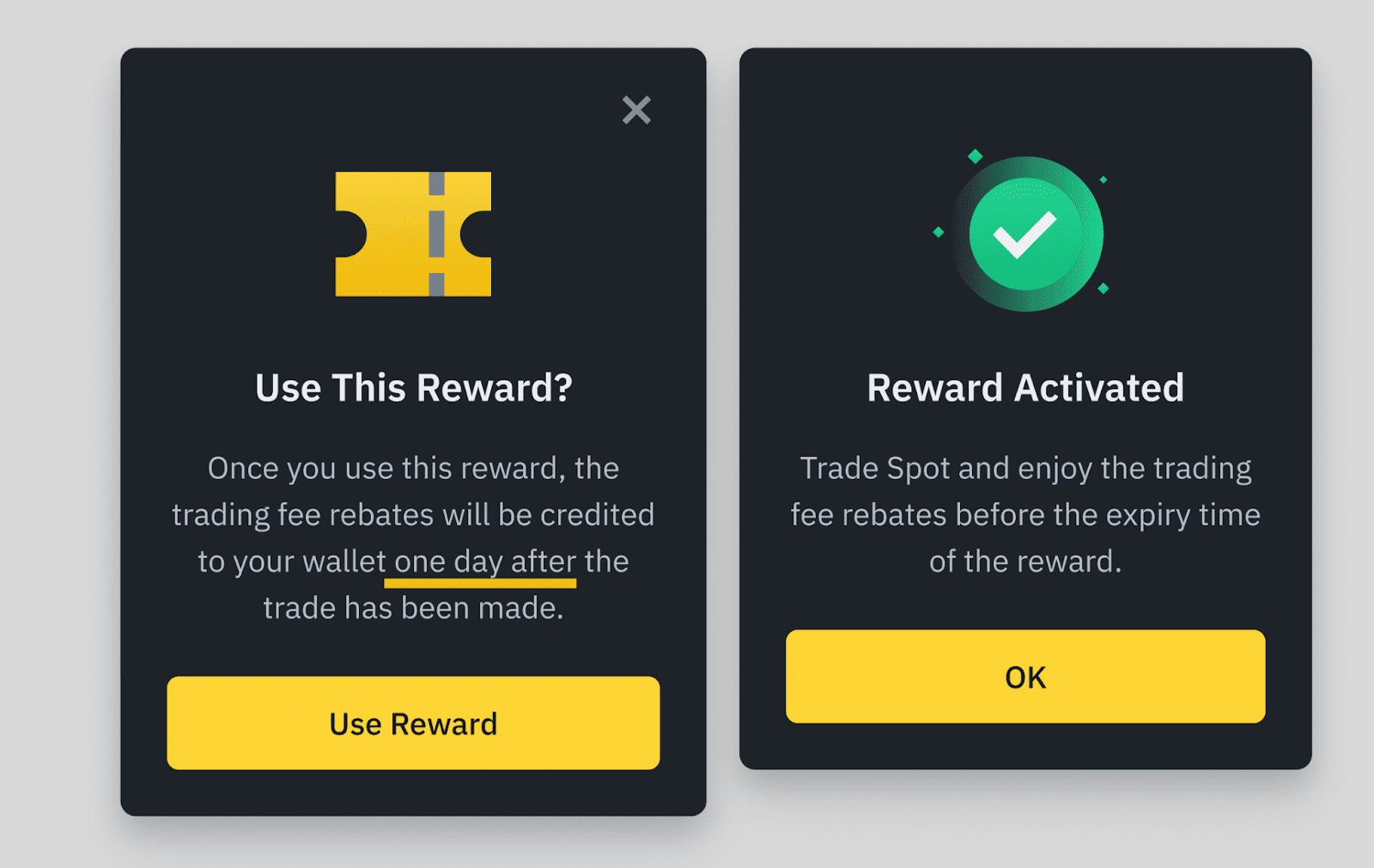 You can enjoy this discount on certain products such as spot trading, margin trading, futures, and the Binance NFT market during the validity period of the vouchers. Once the voucher is activated, the daily trading or platform fees for the specified product (excluding referral commissions) will be added to your spot wallet in USDT, USDC, or BNB the day after trading.