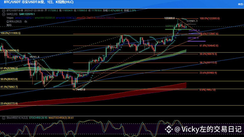 Wedge structure lower support: $114,000 (coinciding with daily 38.2% Fibonacci retracement), if it stops falling, it will trigger a second rebound.