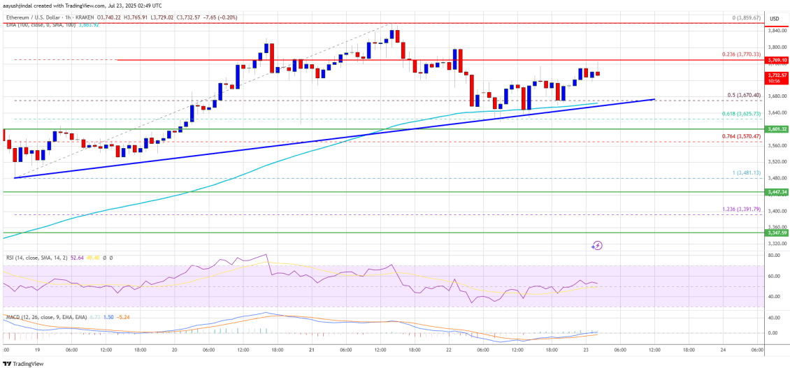 ETH has recently surged strongly after breaking $3,720, and once approached $3,860, but then pulled back to around $3,650 for consolidation.