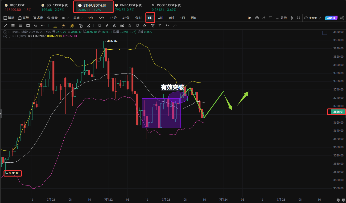 From the 4-hour K-line, ETH recently played a roller coaster in the $3700-$3800 range: