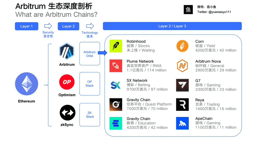 Currently, the Arbitrum ecosystem has already seen various types of sub-chains, covering a wide range including RWA, gaming, NFT, DeFi, and more.