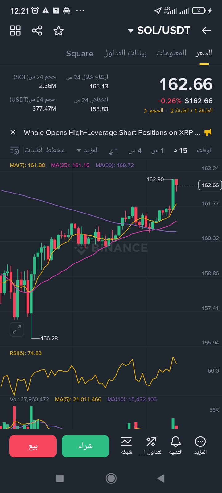 Price: The current price of SOL is $162.66.
