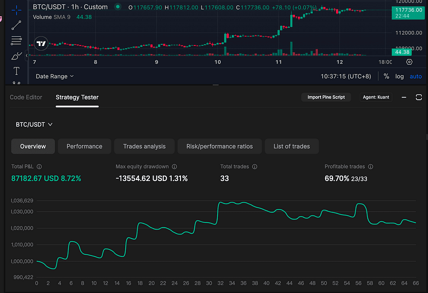Efficient backtesting engine: Supports strategy backtesting based on historical candlestick data (e.g., BTC/USDT, ETH/USDT), generating detailed reports that include total profit and loss, maximum drawdown, win rates, and other key indicators.