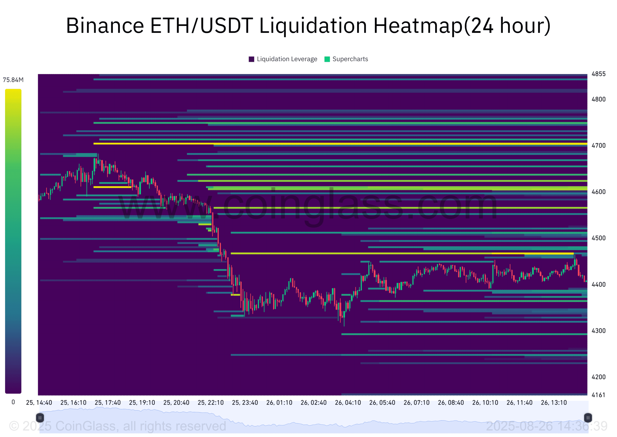 The liquidation heatmap for ETH shows that around $4,700 is a dense liquidation area. If buyers successfully break through, it may trigger liquidations, bringing new opportunities for a rise; conversely, if it doesn't break through, it could lead to leveraged liquidations and large-scale sell-offs. This area is both an opportunity and a risk point; whether it can break through will determine if ETF fund flows and reduced reserves can translate into sustained rebounds. 💥