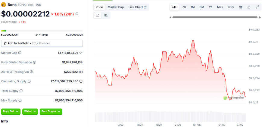Price $0.000028, market cap $1.7 billion, built on the Solana ecosystem, with trading volume and adoption steadily rising. Recently driven by rumors of destruction and ETFs, the price surged by 85%. As the Solana ecosystem recovers, BONK is expected to continue benefiting.