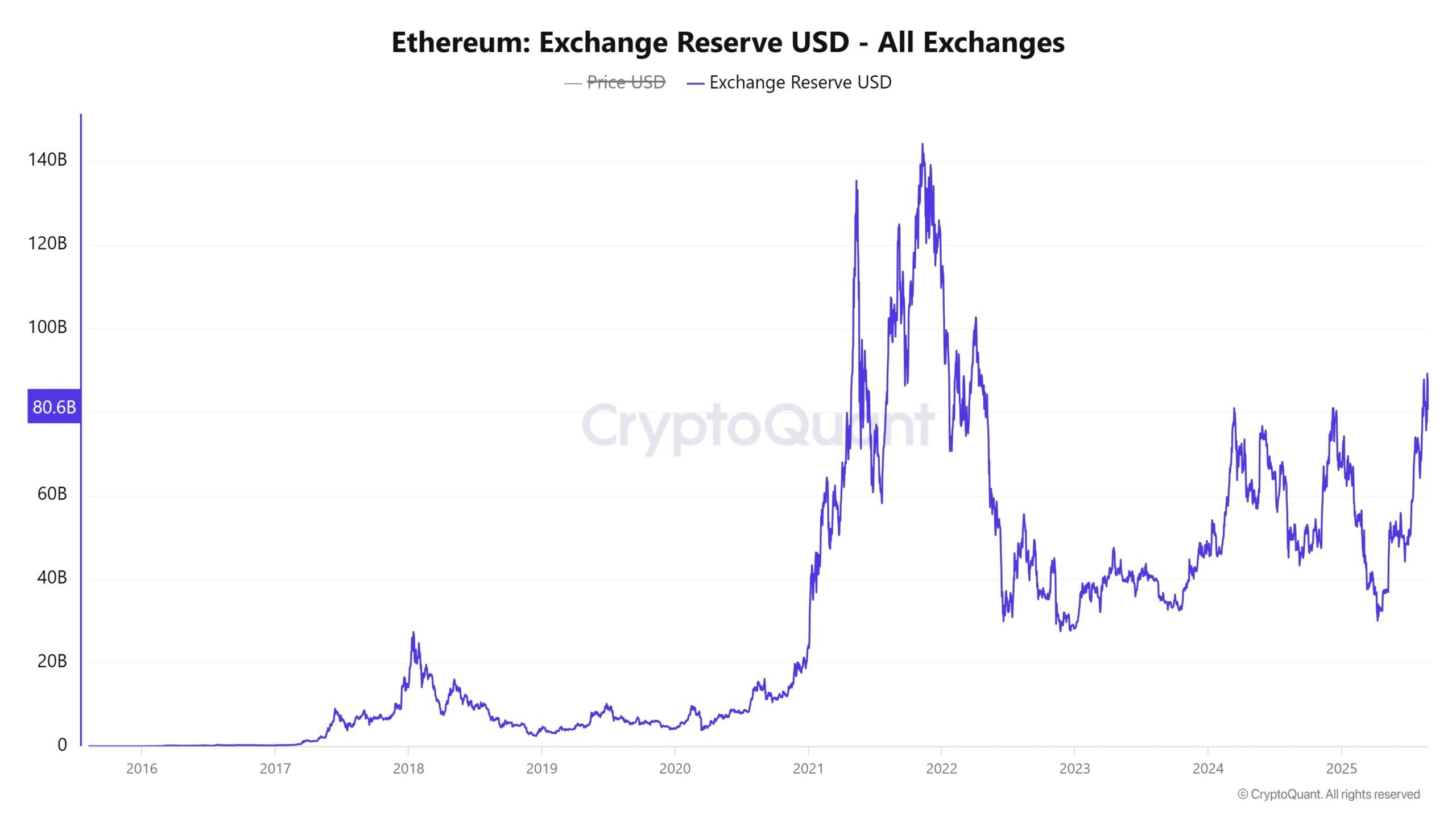 ETH reserves on exchanges have decreased by 4.41%, down to $80.7 billion. This means that investors are taking ETH off exchanges, possibly preparing to hold for the long term, which also reduces selling pressure. Historical data shows that reserve declines are usually accompanied by stable or rising prices due to limited circulating supply. Simply put, decreasing reserves mean increased market confidence, but it may also amplify volatility—once there is a large buy or sell, low liquidity can cause prices to fluctuate sharply. ⚡