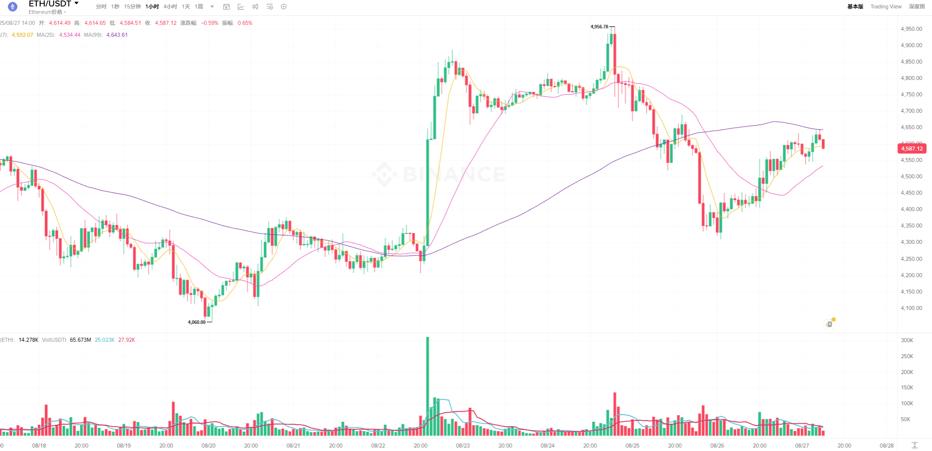 Ethereum (ETH) has recently had a bustling market—last week, ETF fund net outflows were 105,000 ETH, ending a multi-week strong inflow rhythm, raising concerns about institutional confidence weakening. However, the good news is that the week began with 16,900 ETH flowing back into the spot ETF, indicating market interest is quietly recovering. The current ETH price is approximately $4,587, slightly below the key resistance of $4,700. ETF fund inflows and changes in exchange reserves will directly impact short-term price trends.