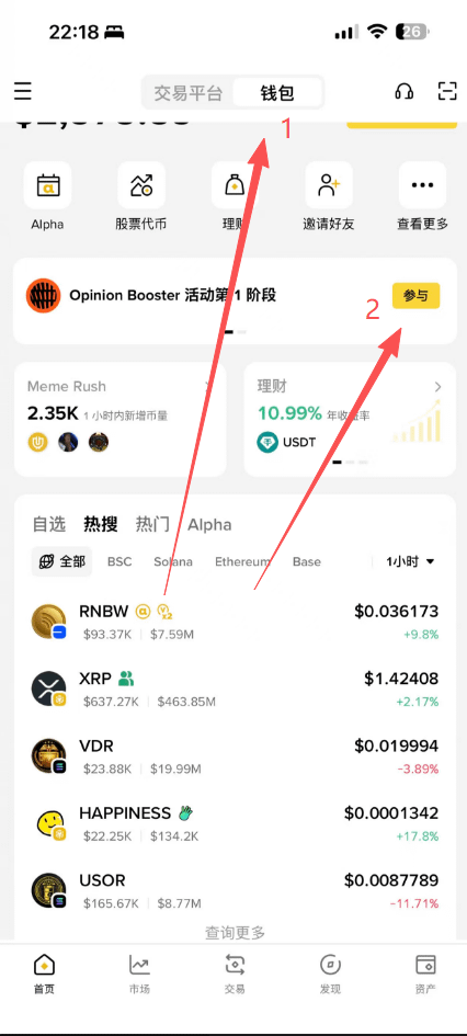 No more chatter, let's go to the tutorial! So that beginners can understand it too!!! Can be done on the web or mobile! First, open the APP and click on the marked 1, then 2 to participate!