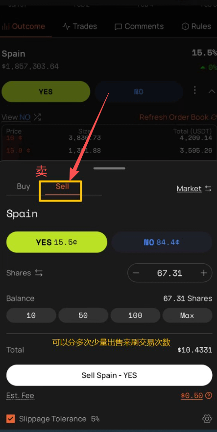 After a successful purchase, wait a while, refresh the page and re-enter the event you purchased, then click on the purchase page again, and switch to Sell to sell! Note to sell in batches, sell 5 times! Complete the task