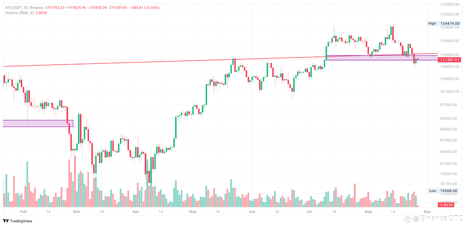 In last week’s report, our desk emphasized the critical importance of maintaining the key trendline to sustain Bitcoin’s upward momentum. We also identified $108,000 as the next significant support level should the trendline fail. While Bitcoin’s price action was weaker than initially expected, the trendline held as support, bolstered by the dovish tone from Fed Chair Powell’s Jackson Hole speech last Friday. However, the subsequent price surge appeared more like a short squeeze than a genuine shift in market momentum. Over the weekend, the bearish pressure resumed, culminating in a decisive break below the trendline on Monday. Bitcoin then tested the $108,000 support level, exactly as we anticipated in our previous analysis.
