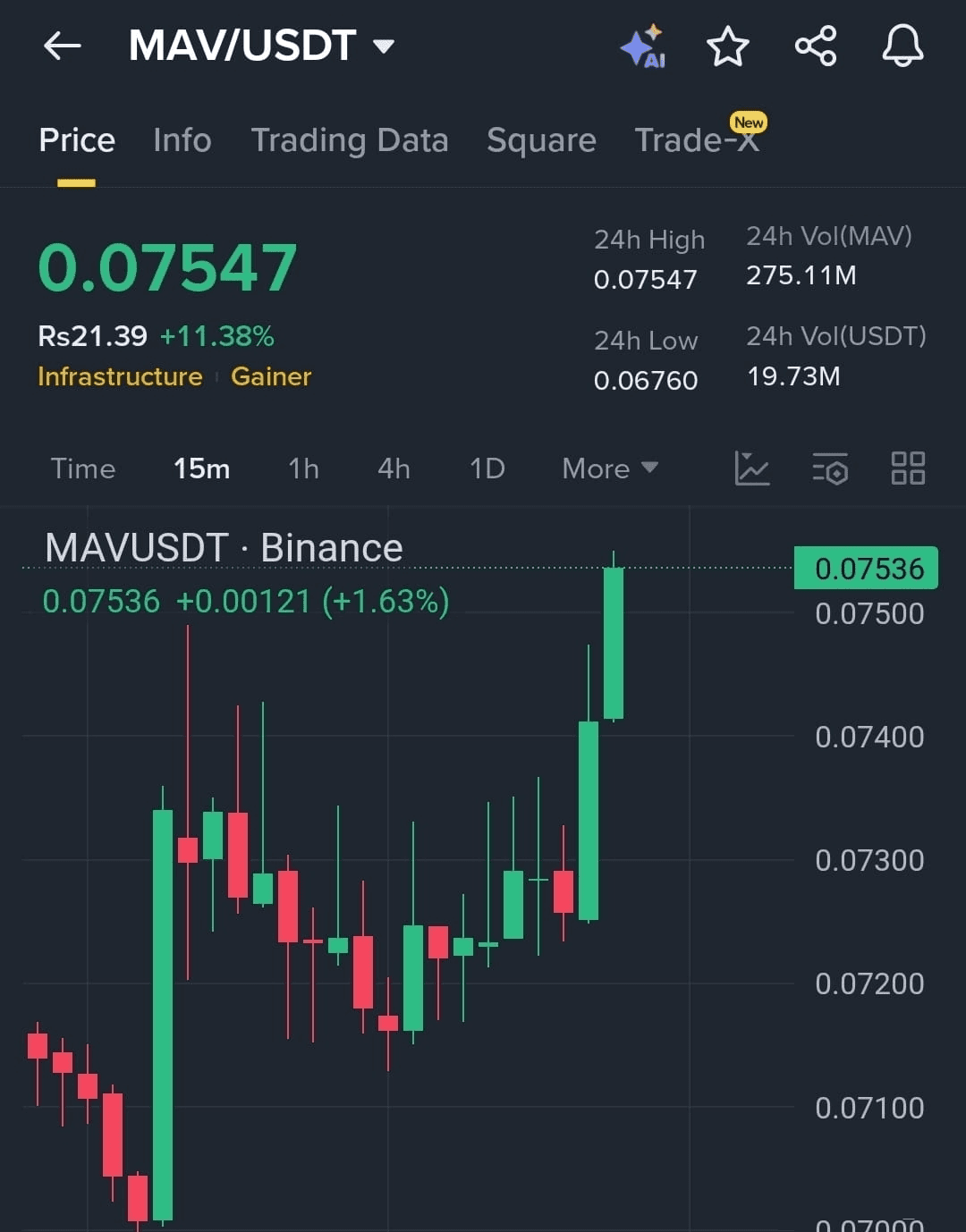 The $MAV has just bounced back nicely from 0.06760 and has broken an important resistance with solid volume. If we maintain above 0.07400, the bullish momentum should continue.