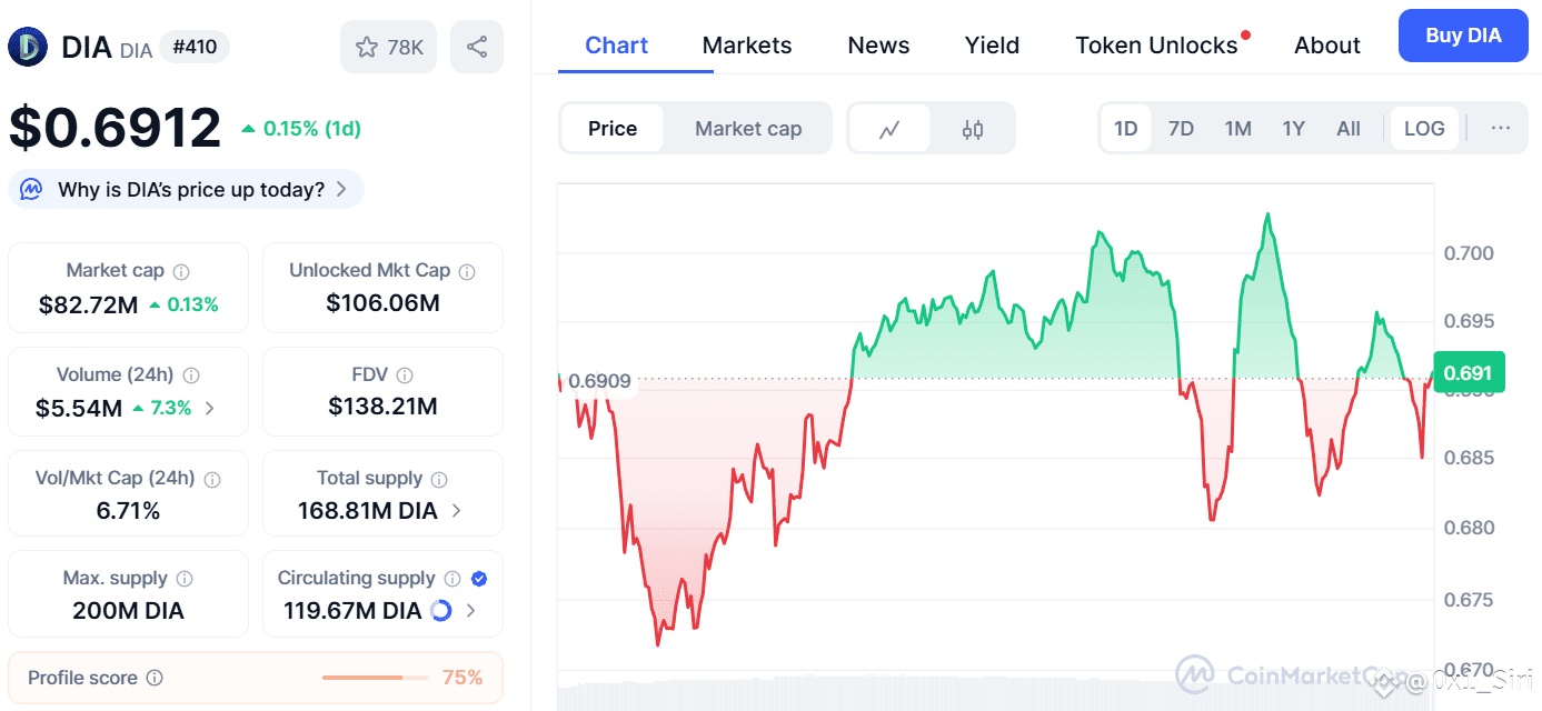 With verifiable data infrastructure, a custom-built rollup for computation (Lumina), and RWA price feeds already live, DIA is redefining what a trustless oracle should look like. Trading at around $0.69 per token with a market cap near $83 million, DIA’s combination of transparency, technology, and growth potential makes it one of crypto’s most compelling underdog stories.
