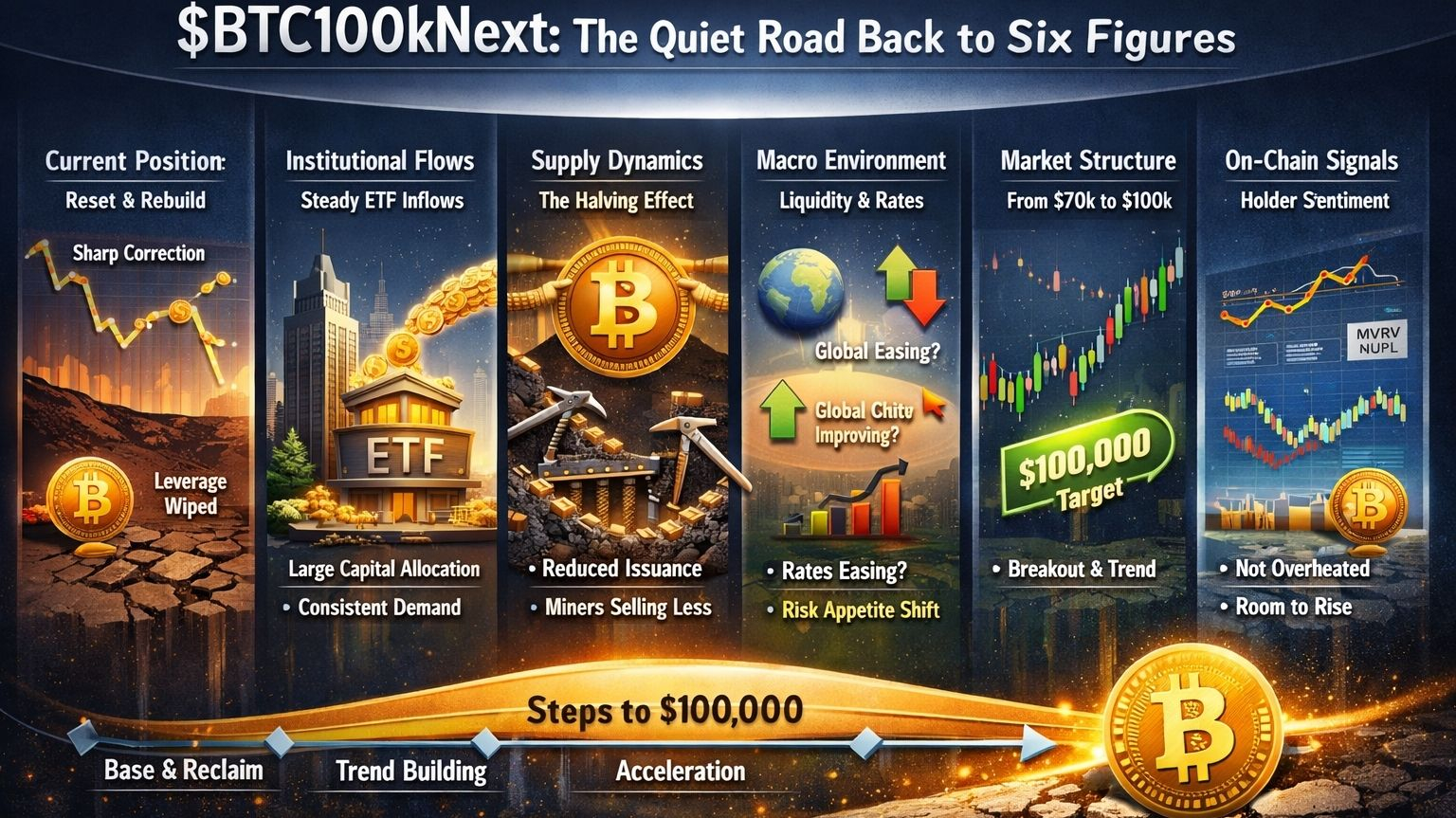 No thesis is complete without acknowledging risk. Aggressive macro tightening, sustained outflows from institutional vehicles, or renewed liquidity shocks could delay or derail the path toward six figures. Markets remain adaptive and sensitive to external catalysts, and structural progress can stall if confidence deteriorates significantly.